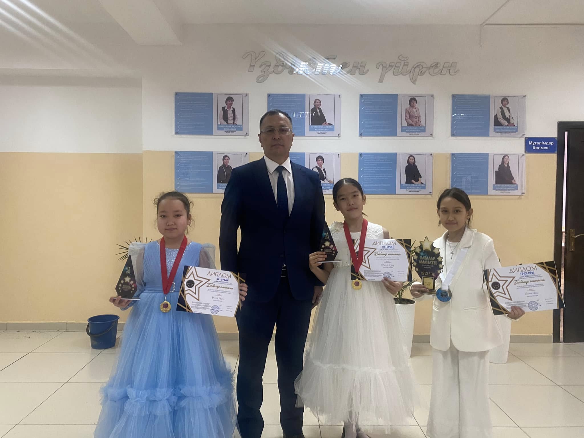 Обладатель ГРАН-ПРИ в номинации Эстрадный вокал на VIII Международном конкурсе RE_SOL_STAR BABALAR AMANATY ученица 5” д "класса Саяхат Айша Канатовна, II место учащиеся 5”Г" класса Влагалек Назым Азимхановна, III место Жусупбек Каусар Нуржановна